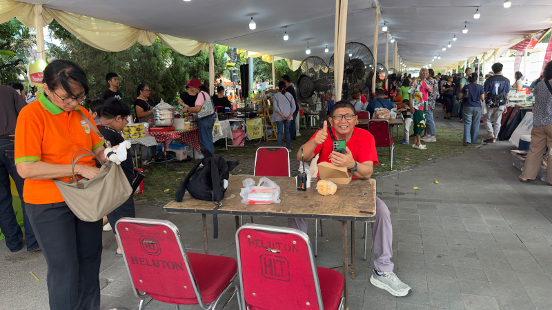 Meriahnya pelaksanaan Bazaar tahun ini turut disambut dengan senyum sumringah Ketua Badan Pelaksana MUPEL Jakarta Pusat, Pendeta Abraham Ruben Persang, ketika diminta berpose sejenak untuk diambil gambarnya. (ap)
